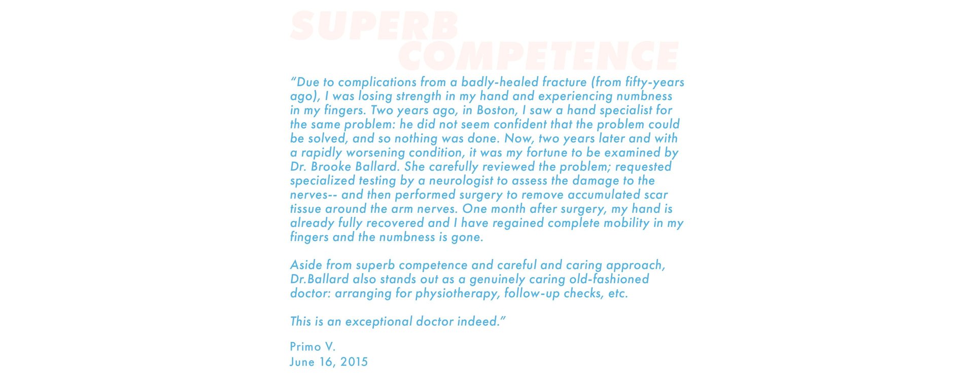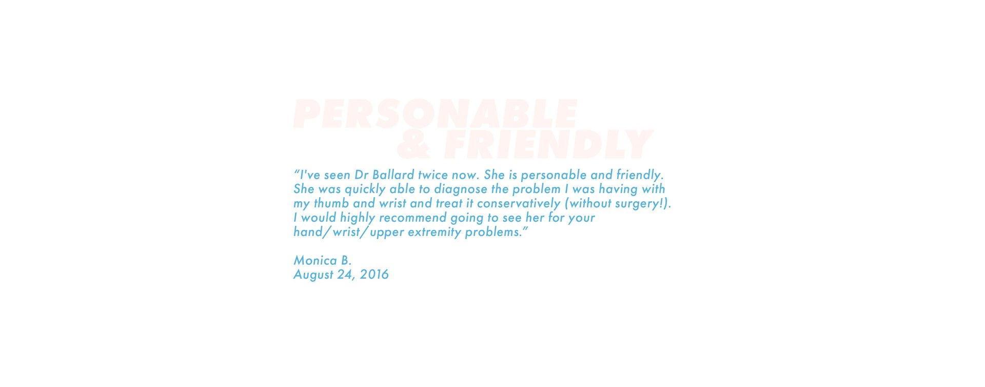 Dr. Ballard is fellowship-trained in orthopedic surgery of the shoulder, elbow and hand. Her scope of care ranges from arthritis treatment of the hand, nerve compression conditions such as carpal and cubital tunnel syndromes, general orthopedic fracture care, arthroscopy, and complex joint replacements throughout the hand and upper extremity.