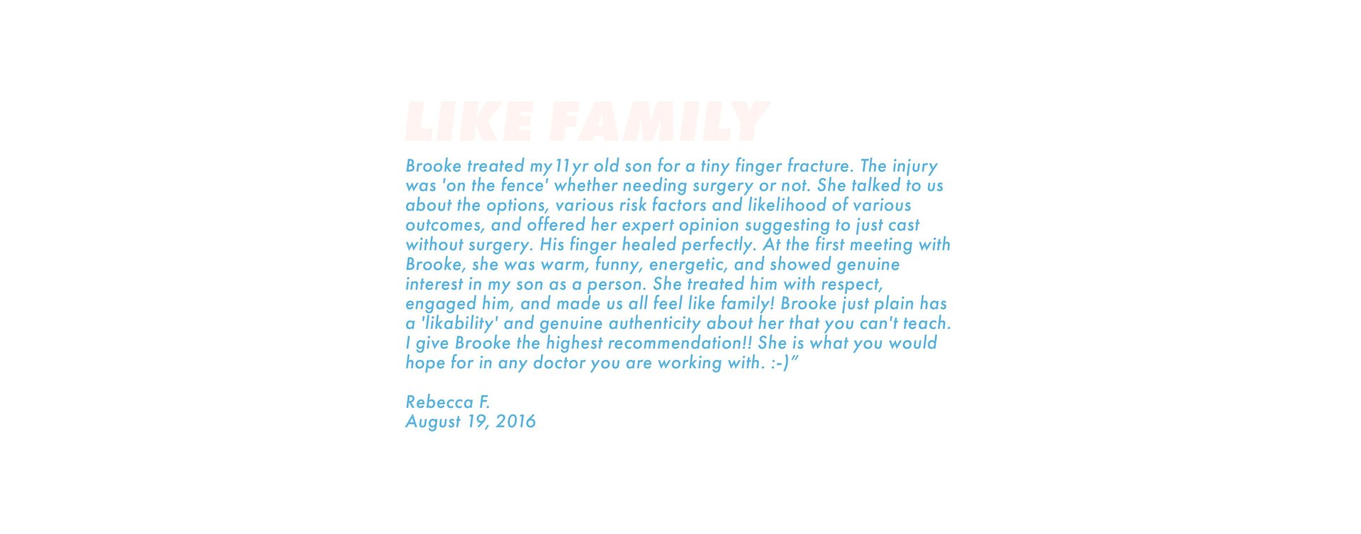 No stranger to injuries and rehabilitation herself, Dr. Ballard sustained an ankle fracture as well as tendon lacerations in two separate seasons as a high school varsity athlete and team captain. She still enjoys running, volunteering for the San Diego chapter of Girls on the Run and a national congenital limb differences camp, Hands to Love, and swimming at the La Jolla Cove with her husband and children.