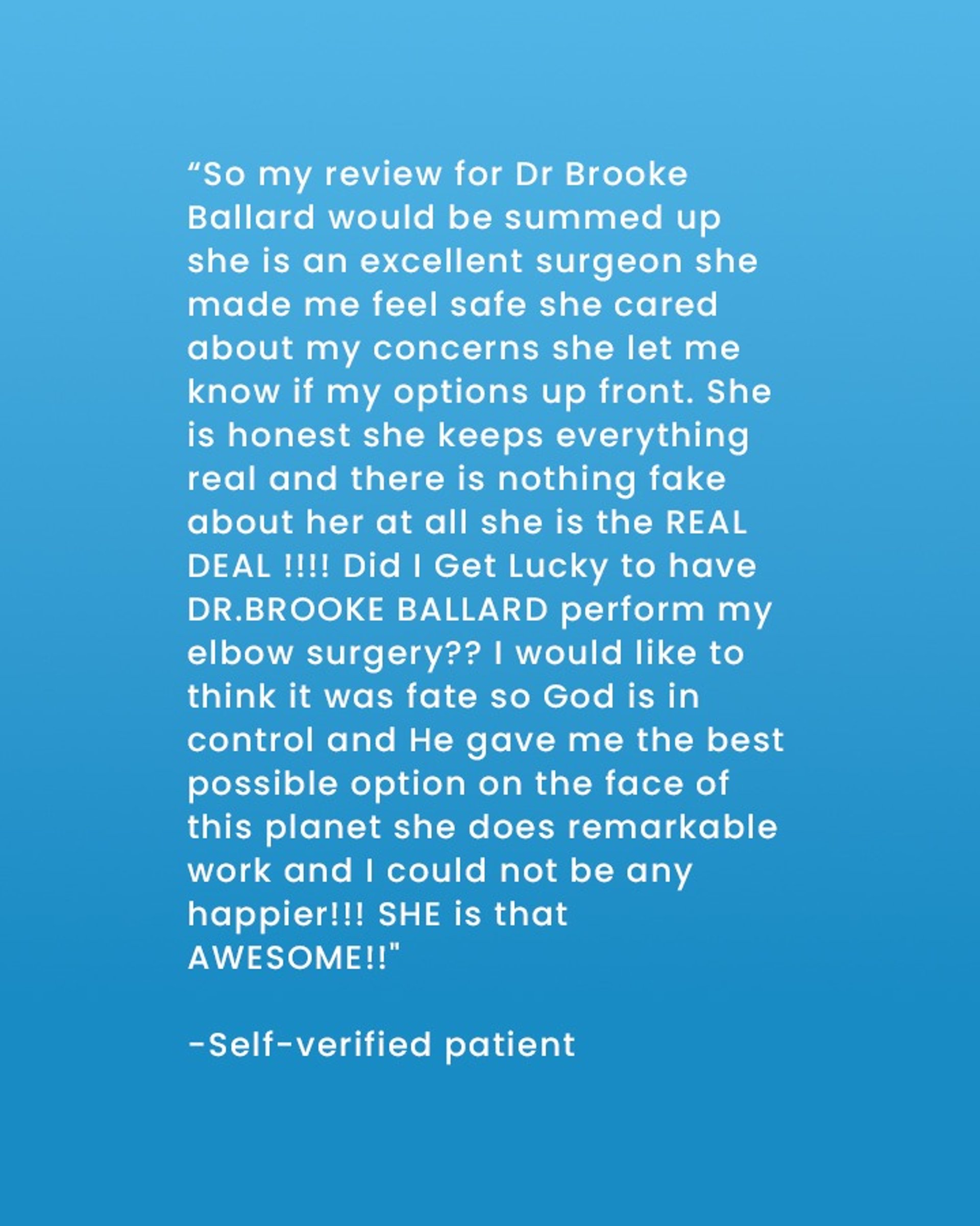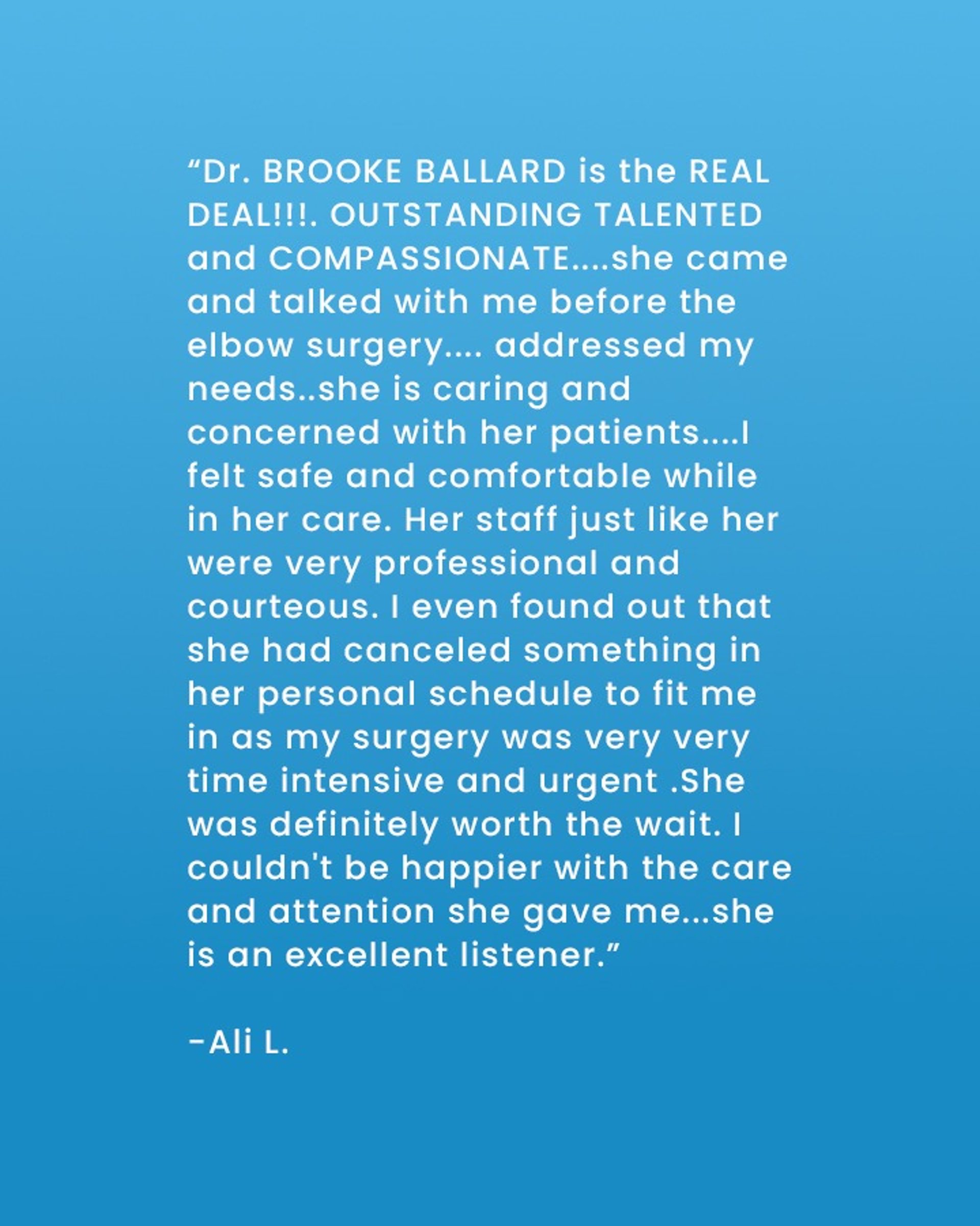TESTIMONIALS FROM DR. BALLARD'S PATIENTS: